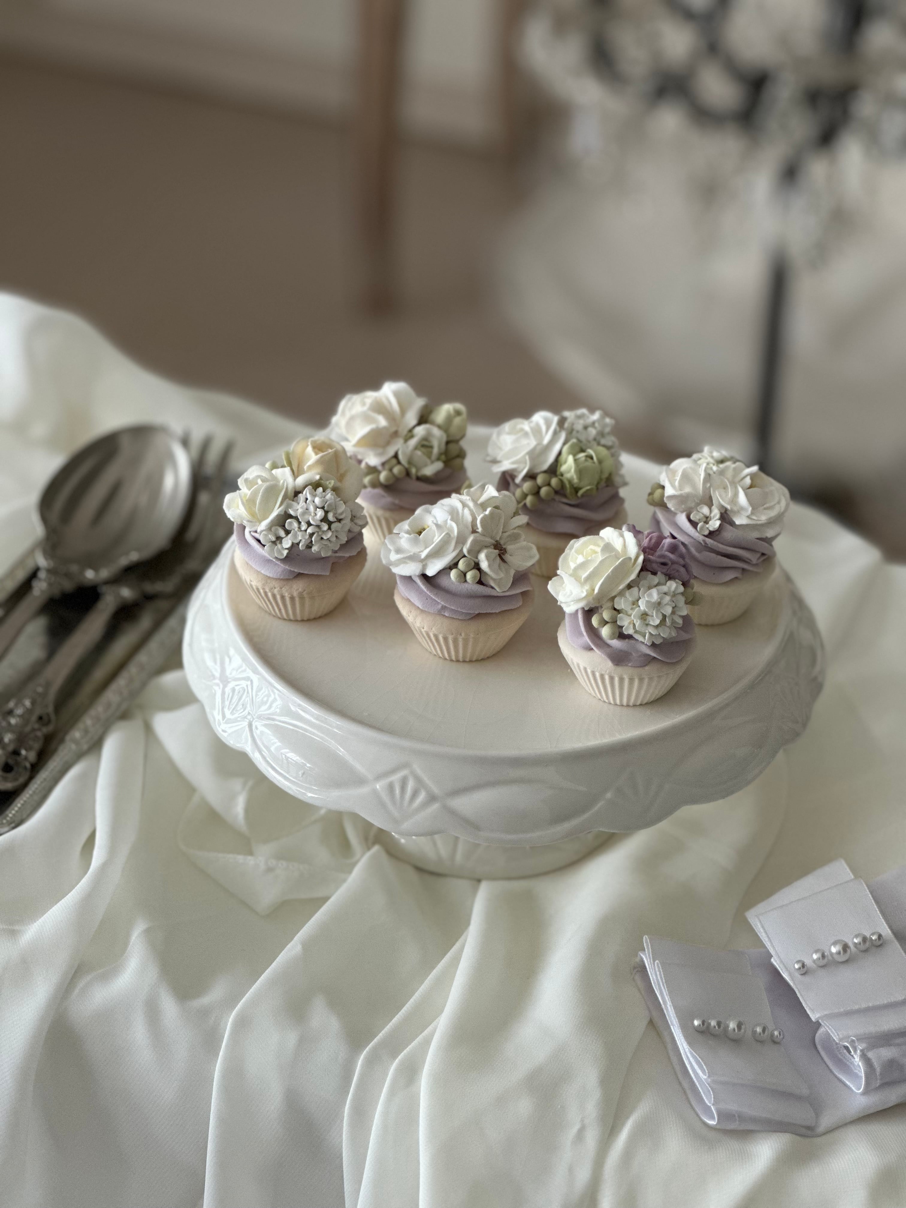 小さなカップケーキの上に、バラや小花など様々な種類のお花をアレンジ。